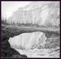 Old Bridge of the Gods drawing by unknown.